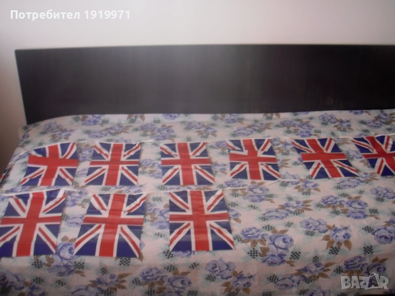 ново английско знаме 11 флагчета , дължина 285 см, с връзки от двата края . всяко флагче е с размери 20-30 см. 9лв.