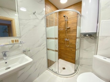 Без комисиона. Хубав тристаен апартамент в комплекс Грийн парадайс V. Апартаментът е на трети етаж, разпределението включва антре, дневна с кухненски бокс, две спални, две бани с тоалетна и тераса.
