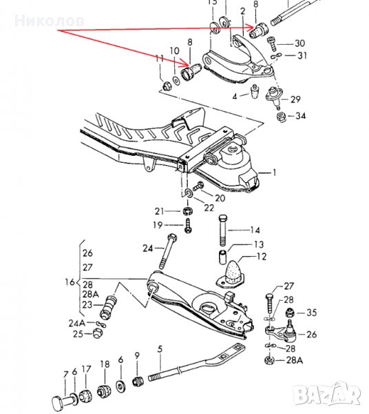 Тампони за горен носач VW LT 1976-1996