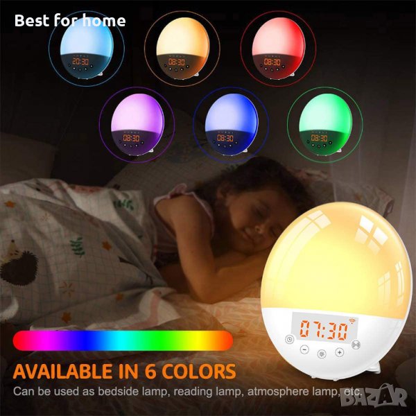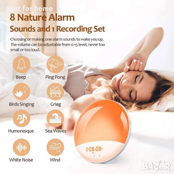 ✔ИНТЕЛИГЕНТНА СИМУЛАЦИЯ НА ИЗГРЕВ / ЗАЛЕЗ: Просто задайте часа на алармата, светлината за симулация на изгрев постепенно ще се увеличи от 10% до 100%. Нека човешкото тяло усети промяната на естествената светлина, тялото бавно се събужда до зададеното време за аларма и мелодията на естествения звук бавно звучи