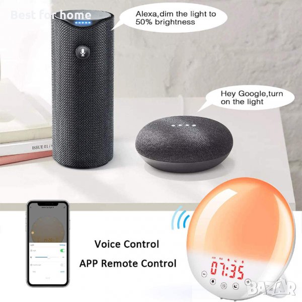 ✔SMART- VOICE WIFI: Тази интелигентна лампа за събуждане е съвместима с Amazon Alexa и Google Home, предлагайки гласово управление със свободни ръце с 2,4GHz WiFi; удобен, забавен и лесен за използване.