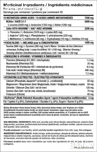 (аминокиселини с разклонена верига). Все повече и повече изследвания показват, че пълната смес от EAA (включително BCAA) показва по-добър растеж и възстановяване, отколкото просто допълване само с BCAA. Добавянето на L-аргинин (CEAA) подпомага общия транспорт на аминокиселини. Съчетан с фокусна смес без стимуланти, енергизиращи B-витамини, всичките 5 електролита и подсилен със 100% доза от патентования абсорбиращ агент, BioPerine® EAA+BCAA Complete™ е най-пълната формула от този вид – готова за всеки спорт .