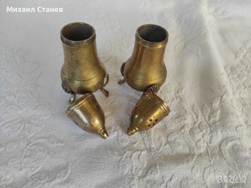 Месингов комплект за сол и пипер подходящ и за декорация.