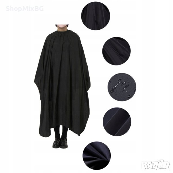 Бръснарската пелерина, изработена от найлон, е основен инструмент за всеки фризьор. Предпазва кожата и дрехите от боя за коса и други вредни вещества, като поддържа дрехите ви сухи и чисти. Пелерината е влагоотблъскваща и може да се пере в пералня.