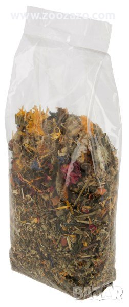 - сушени листа и цветове от ливадни треви, ябълки, шипки, венчелистчета и ароматни билки като листа коприва и стъбла мента