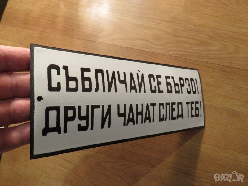 Много рядка емайлирана табела СЪБЛИЧАЙ СЕ БЪРЗО! ДРУГИ ЧАКАТ СЛЕД ТЕБ ! от 70те - за вашета колекция .