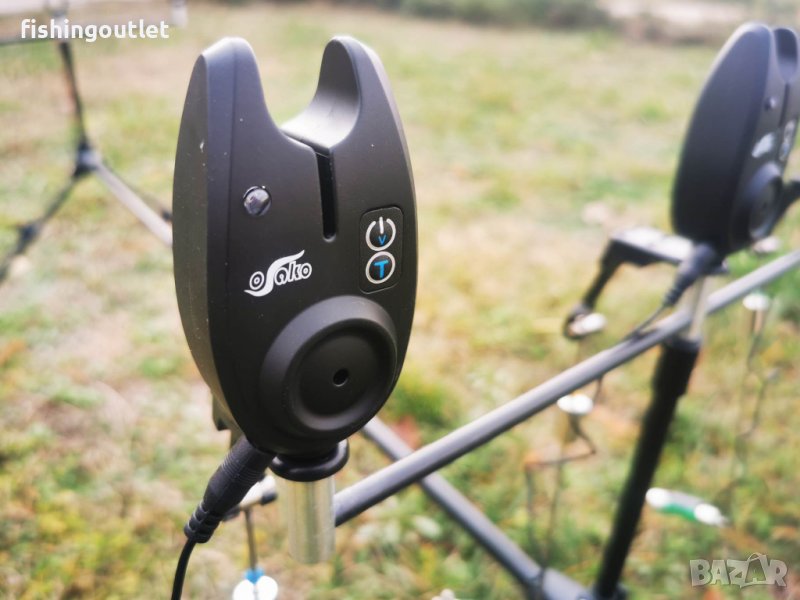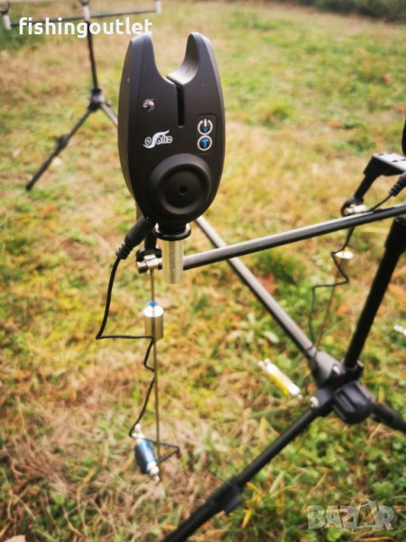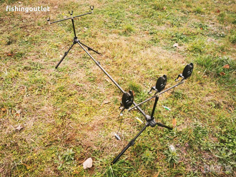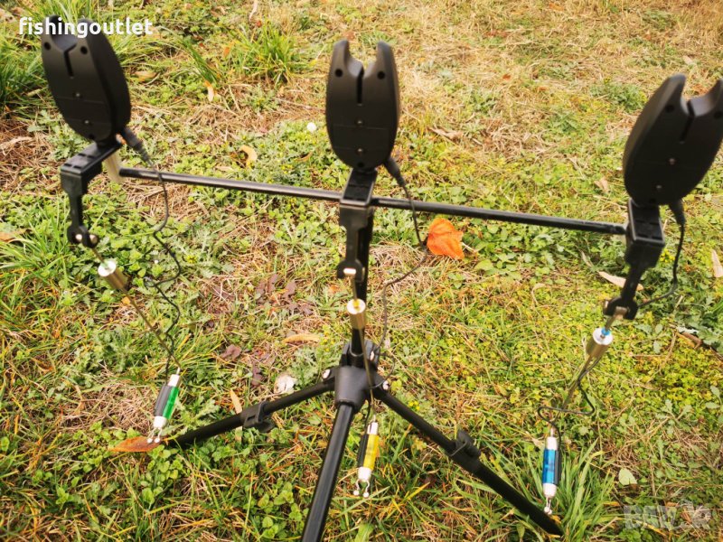 стойка за дънен риболов за до три въдици, три сигнализатора и три светещи обтегача, които се свързват към сигнализатора посредством кабел.