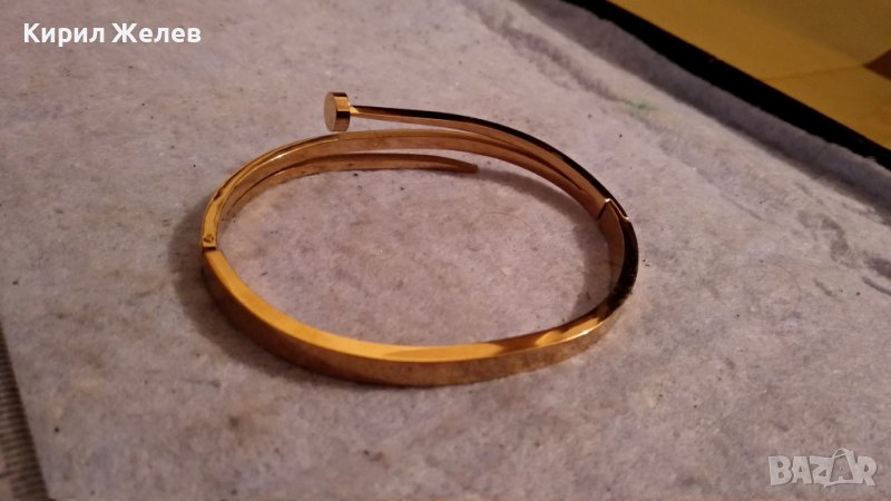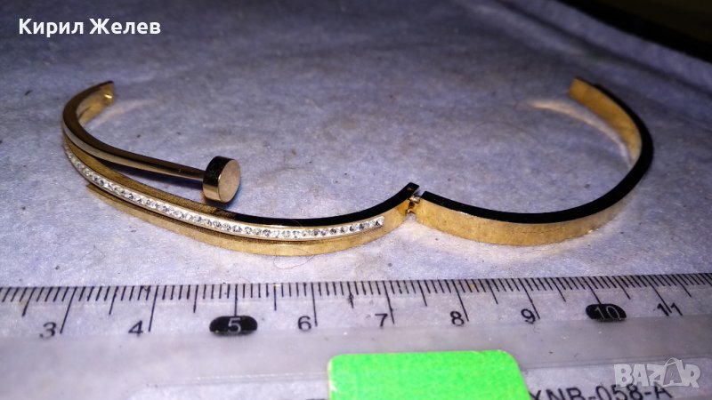 ЕЛЕГАНТНА ПОЗЛАТЕНА МОДНА ДИЗАЙНЕРСКА АРТ ГРИВНА БЛАГОРОДНА НЕРЪЖДАЕМА СТОМАНА с ЦИРКОНИ 34306 → Обява 38950247