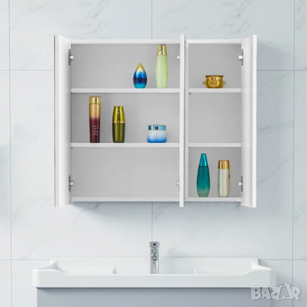 Идеален за баня, душ кабина или като огледало с рафтове и практичен шкаф за съхранение.