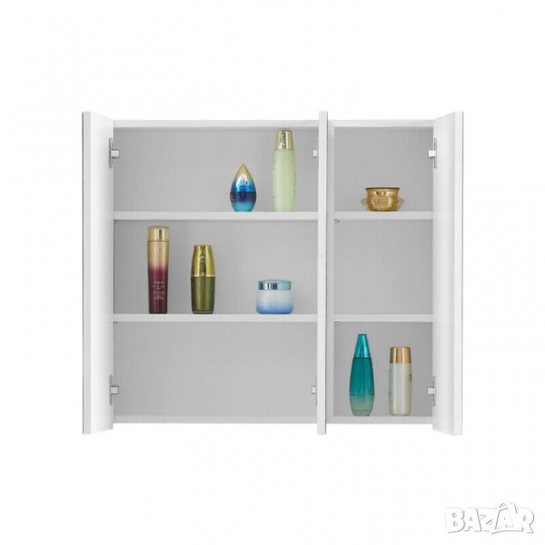 Вътрешната част, зад огледалните врати, включва 2 регулируеми рафта, идеални за тоалетни принадлежности, козметика, бръснарски аксесоари и други вещи, като поддържат банята подредена и организирана.