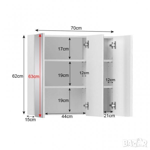 Шкафът разполага с 3 отделения, осигуряващи удобно място за съхранение.