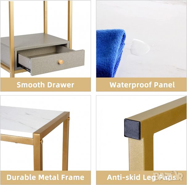 метална рамка с прахово покритие и дебели МДФ плоскости, които осигуряват стабилност и