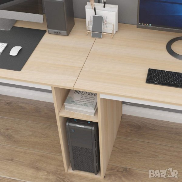 достатъчна да помести два монитора и други принадлежности