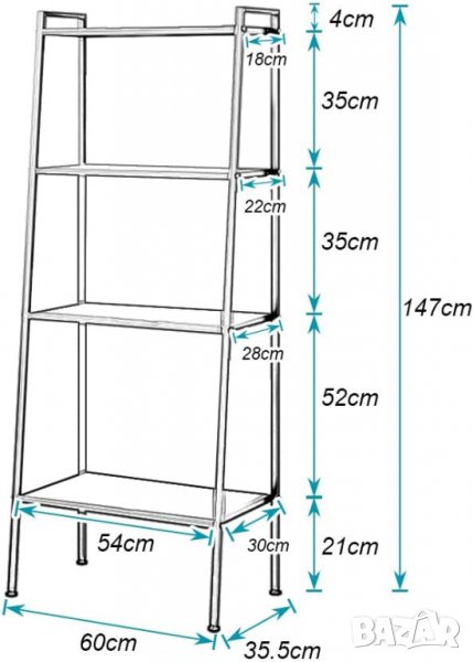 Дизайн с 4 нива, подходящ за малки пространства, оптимизира съхранението и пести пространство.