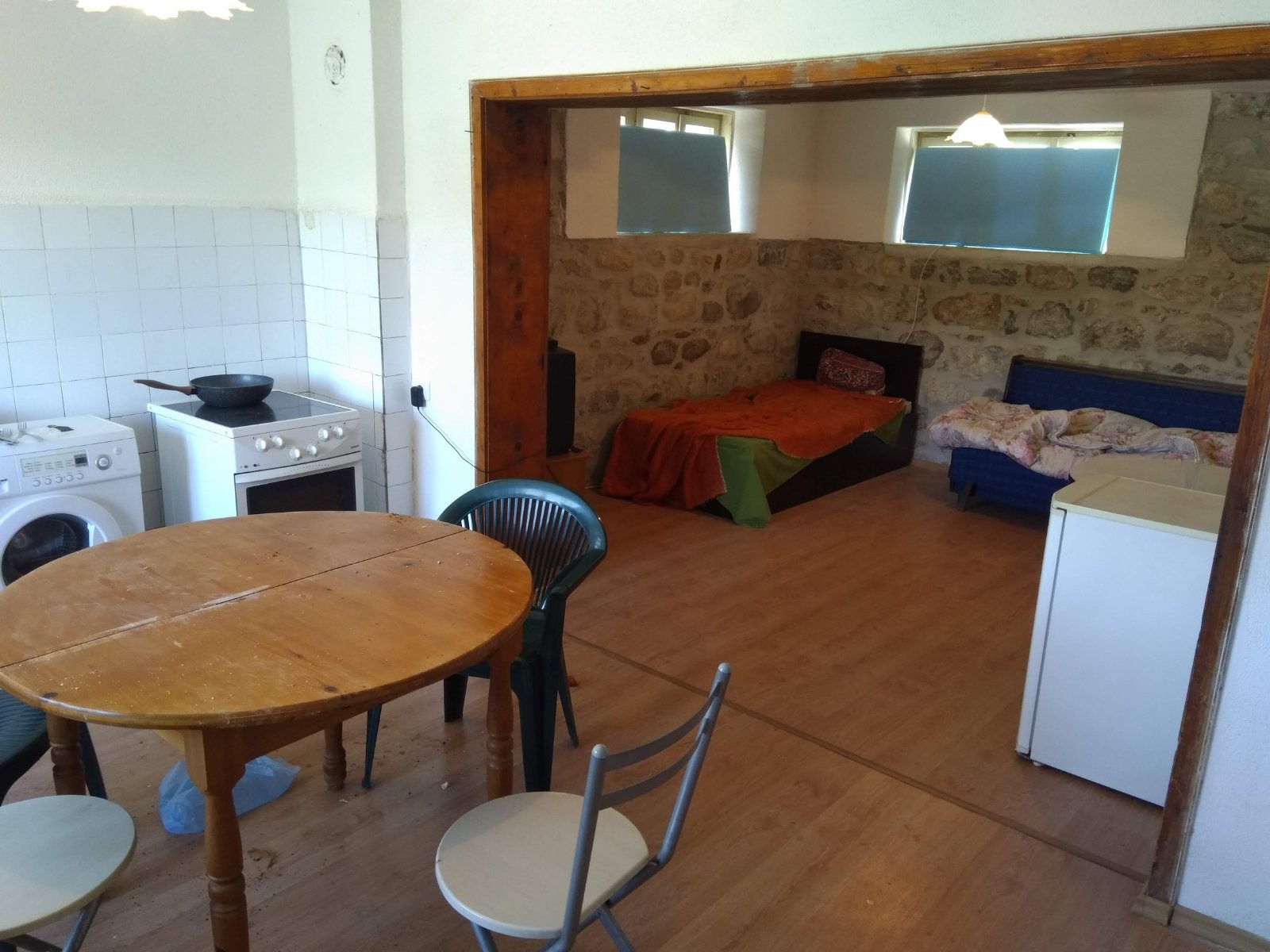 къщата е санирана и е с каменна зидария, 4стаи настилки ламинат, 2 бани+wc и 3душа.