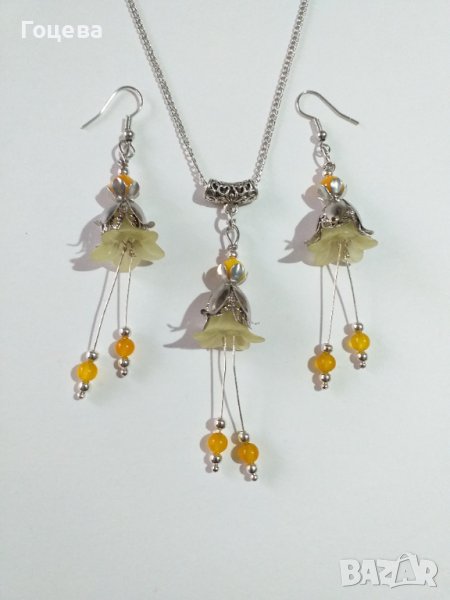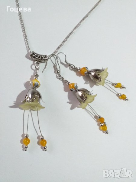 Прелестен комплект бижута с цветя, жълт Авантюрин и жълт седеф и красиви орнаменти в цвят Сребро → Обява 38958081