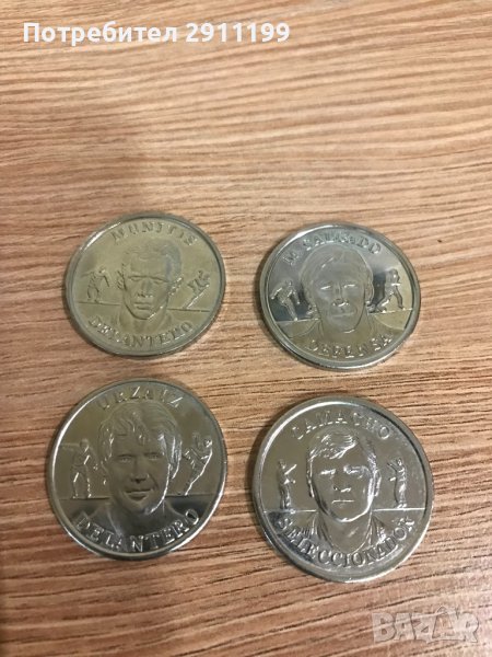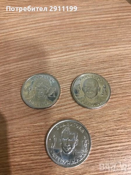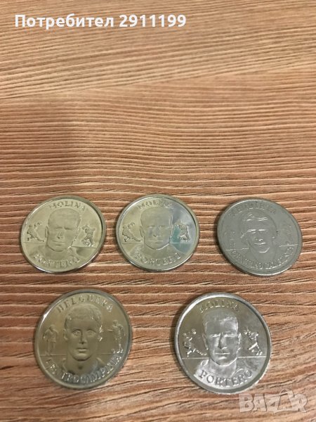 При покупка над 100лв. от профила ми са подарък, само ми кажете че ги искате. 20 броя метални медала / монети от Испания. Национален отбор по футбол 2000г. Има 5 повтарящи се .Официална колекция на Испанската Федерация по Футбол. Цената е за всичките. Вижте снимките за повече детайли. За още различни монети / медали може да разгледате и другите ми обяви.