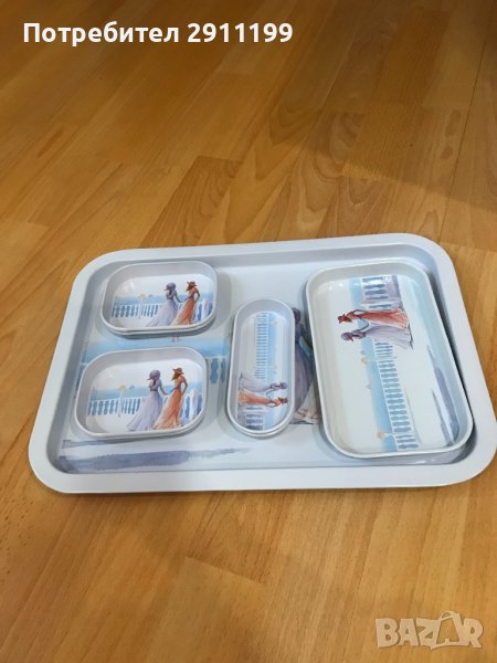 Много красив метален поднос и 7 метални купи за мезета/ аператив / разядка. Стилен дизайн. Неизползван в оригинална опаковка. Произведени в Испания. Перфектни за подарък, декорация или колекция.