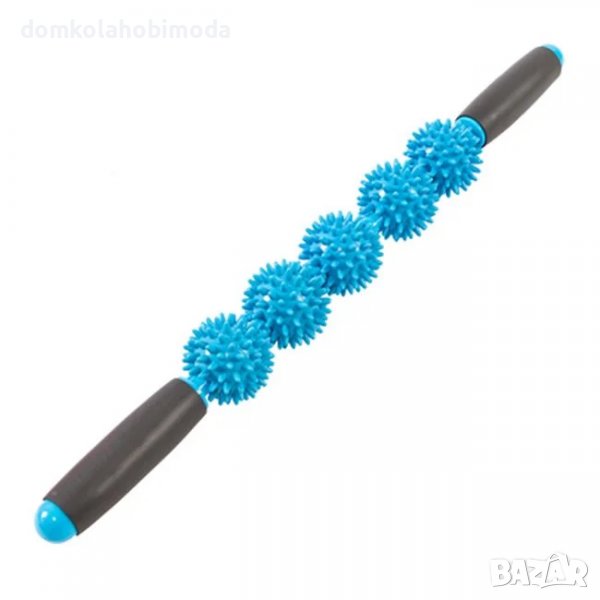 Описание - Характеристики Масажен бар с дръжки и 5 топки с шипове за масаж и възстановяване след тренировка. Масажирайте мускулите, отпуснете и облекчете болката. Повишава кръвообращението и намалява възлите и сковаността.