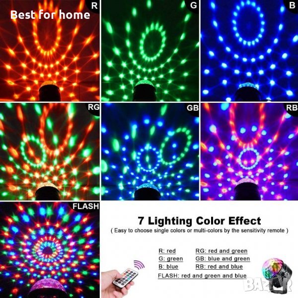 Дистанционното управление ви позволява да изберете 7 красиви цветни светлинни шоута (червено, зелено, синьо, червено/зелено, синьо/зелено, червено/синьо