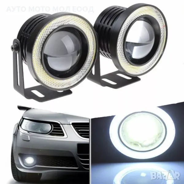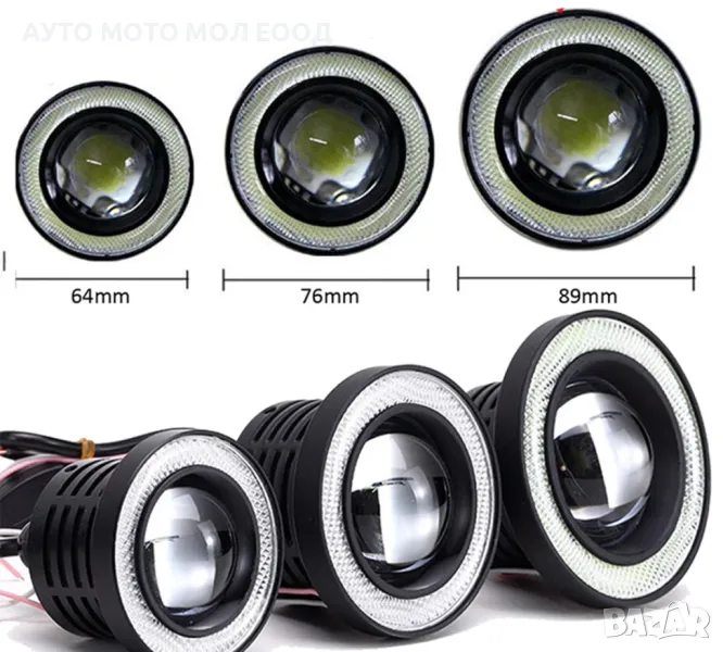 Универсални фарове за мъгла с лупи тип ангелски очи - 64мм/76мм/89мм.