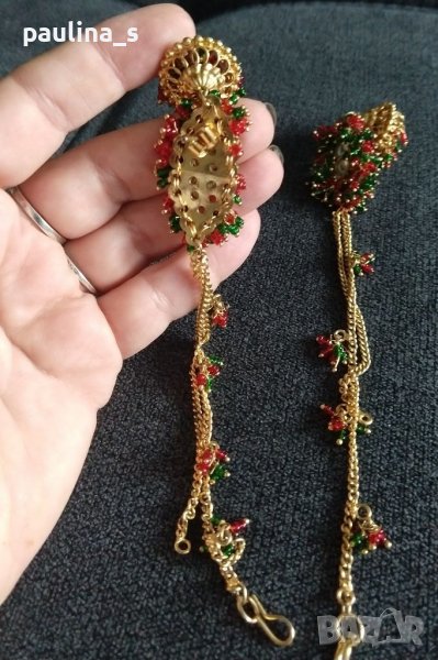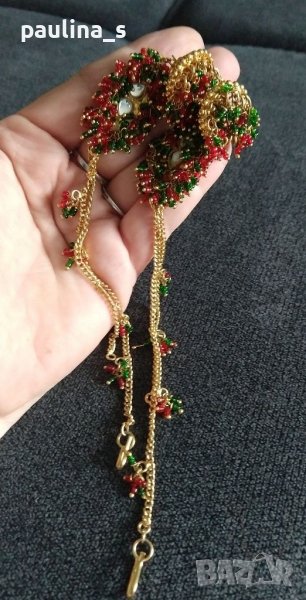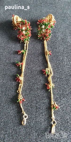 1️⃣. Изумителни висящи обеци от Индия с кукички за закачване на обеци на носа. В златисто са с червени, зелени и бели камъни, нови - цена 10 евро.