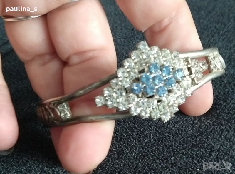 2️⃣. Твърда гривна на панти с бели и сини камъни, подходяща е за повод - цена 10 евро.