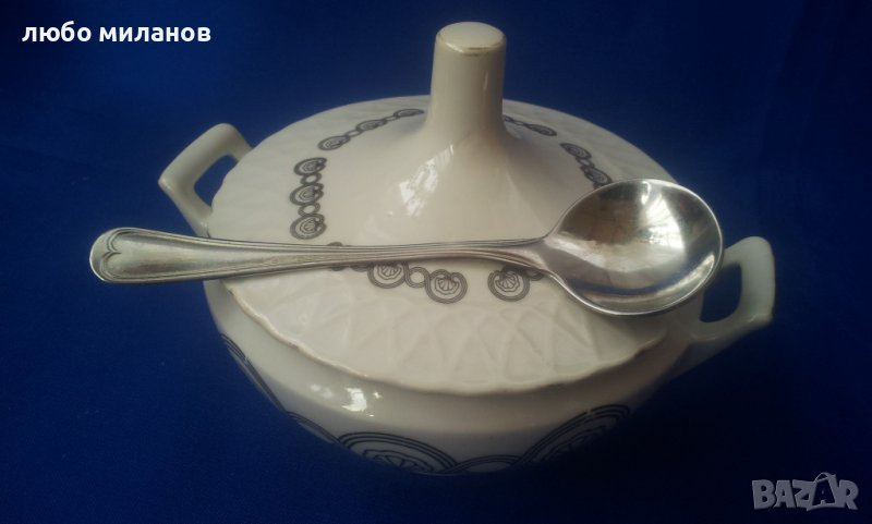 Порцеланова захарничка или сосиера с капаче и лъжичка, българска → Обява 38965204