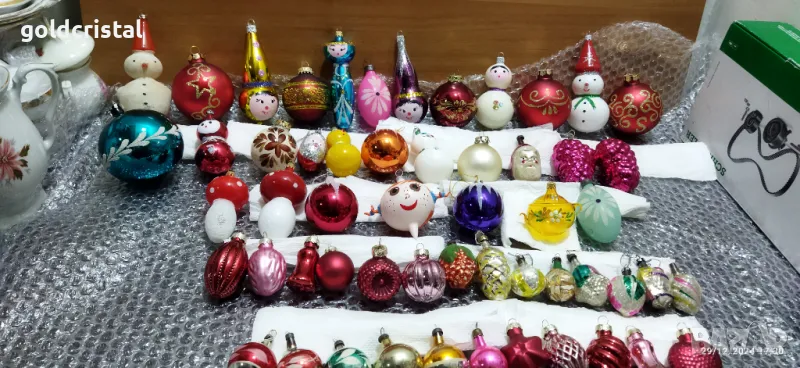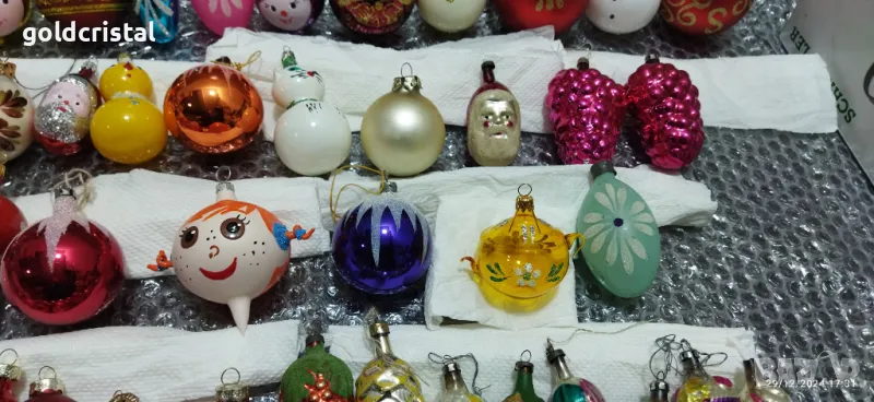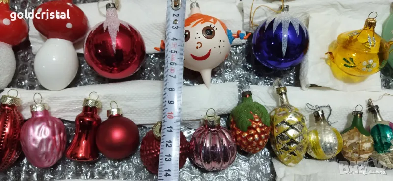Стари стъклени играчки за елха малки- 4лв за брой топки малки -10лв средни топки 15лв за брой голяма топка 20лв за брой жълъди големи 15лв за брой пате снежко палячо матрьошка гъбка -20лв за брой голяма Гъбка принцеса снежанка глава дядо мраз- 29лв за брой чайник 39лв Пипи глава 49лв големи топки 20лв за брой лимони син и розов 10лв за брой снежен човек 49лв кукла дядо мраз -79лв стъклен връх 49лв