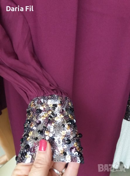УНИКАЛНО КРАСИВА рокля в цвят марсала с пайети по ръкавите и около деколтето → Обява 38969331