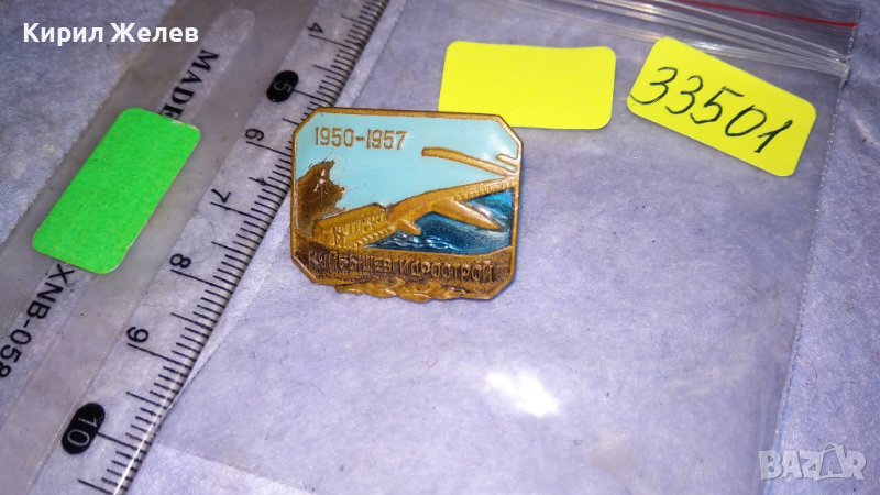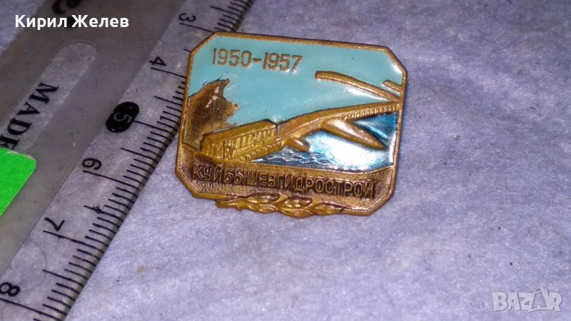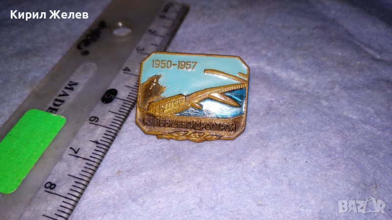1950-1957 КУЙБыШЕВГИДРОСТРОЙ Стара СССР ЕМАЙЛИРАНА РЯДКА КОЛЕКЦИОНЕРСКА ЗНАЧКА на ВИНТ 33501