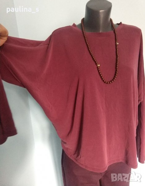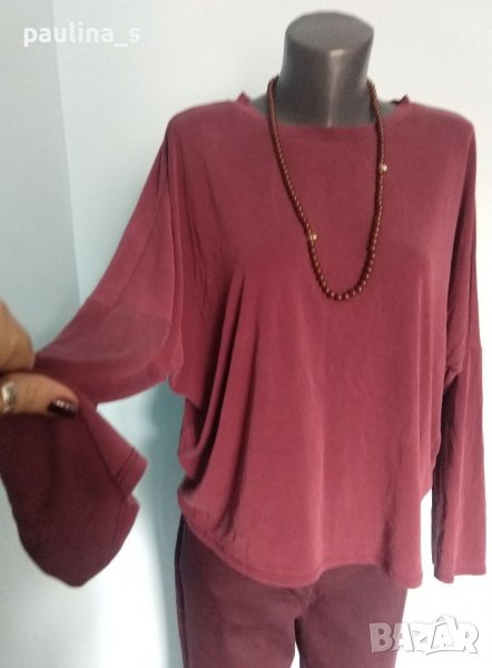 1. XL / 3XL / "MONKL". Цената е крайна 29,99лв. Много мека и удобна блуза с дълъг ръкав, тип туника, кроп модел. Материята е модал и полиестер с транслуцентен ефект, много мекичка и приятна за носене на голо. Моделът е кроп, вижда се добре. Нова, без етикет, една бройка. Цветът е Бордо с избелващ ефект.