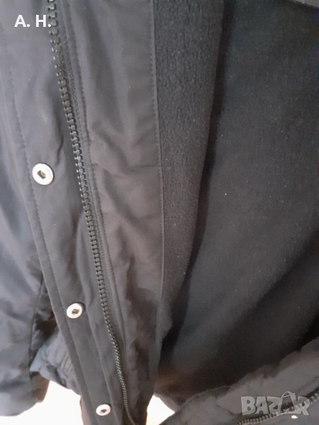 Якето е в отлично състояние, без следи от употреба. Има полар от вътрешната страна и в джобовете, има качулка с пух, с цип и копчета. Гръдна обиколка- 89, дължина 62 см.