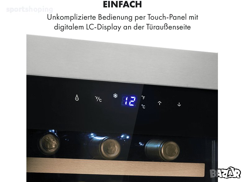 зона ще се поберат до 12 бутилки вино. Всички бутилки са прегледно