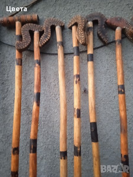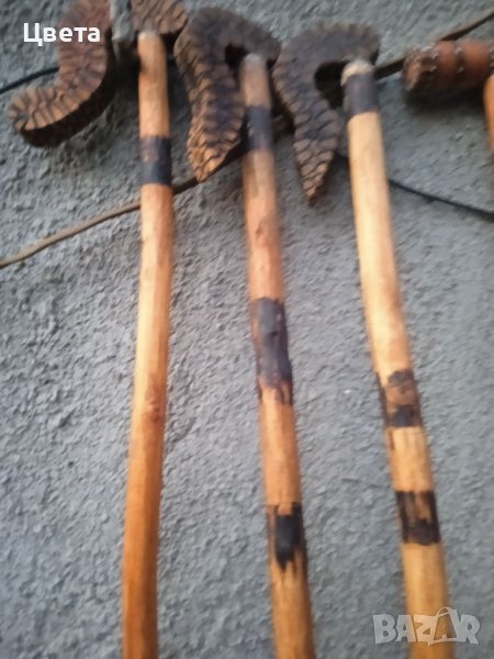 Ръчно изработени Овчарски геги от дърво мъждрян височина 1.90 см. Полирани и пирографирани