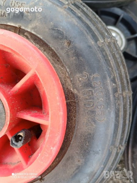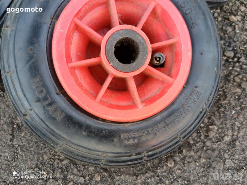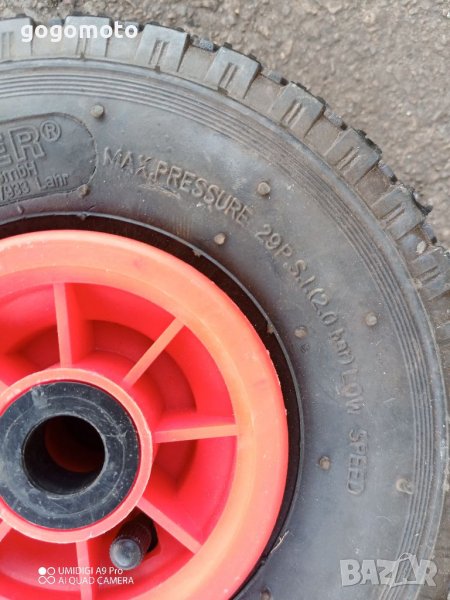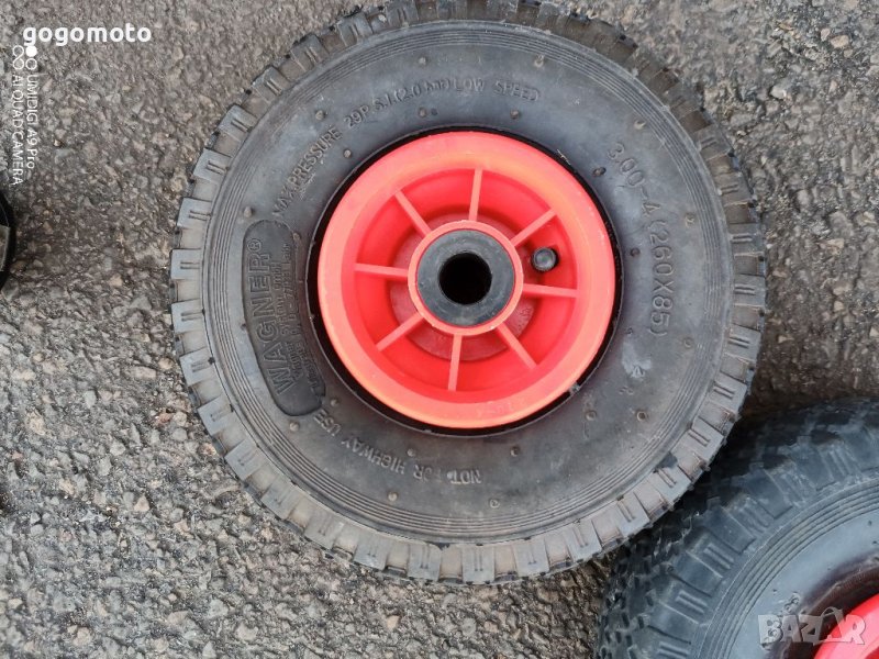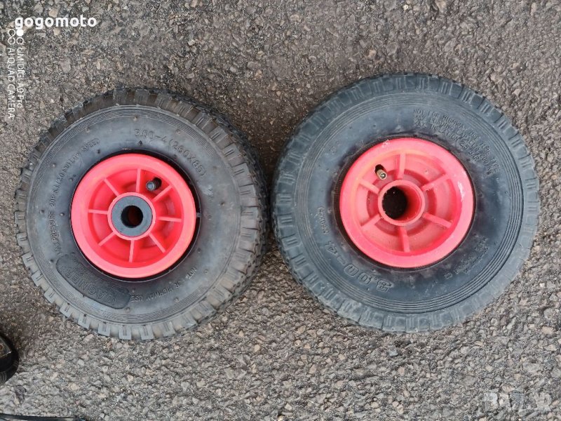 Пневматичните гуми са изработени от здрава, устойчива на износване гума и имат специален дизайн на грайферите, който осигурява допълнително сцепление при по-високи скорости. Джантите са произведени от здрава пластмаса. Колелата са с универсален размер и могат лесно да бъдат монтирани на вашите ръчни транспортни колички, багажни колички и др.