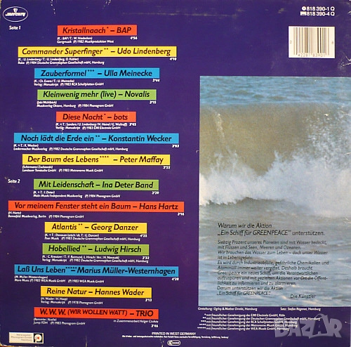 Greenpeace, Germany LP в отлично състояние.