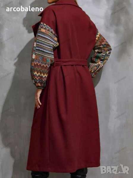 Това уникално палто е идеално за студените месеци. Изключително дългото палто ви топли, като същевременно изглежда стилно. Уникалните пачуърк ръкави са много детайлни и красиви. Стилизирайте този модерен външен слой с кожени ботуши и черна горна част.