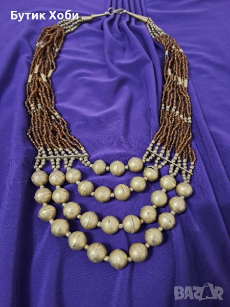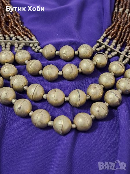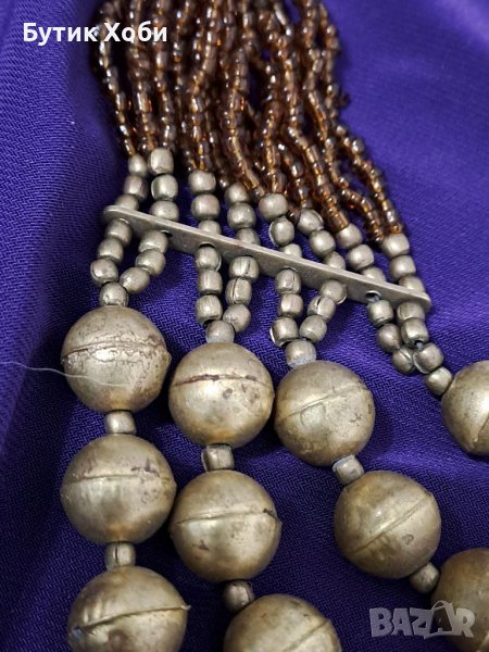 Автентичен стар гердан . Сполучливо съчетание на стъклени мъниста и метални елементи. В перфектно състояние е. Дължина - 50см.