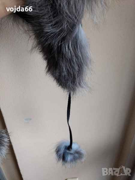 Дамска шапка с естествен косъм-сребърна лисица с пискюли,нова.