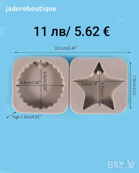 Силиконов молд двоен висулки различни видове - сърца/ кръгове/ звезди → Обява 38990025