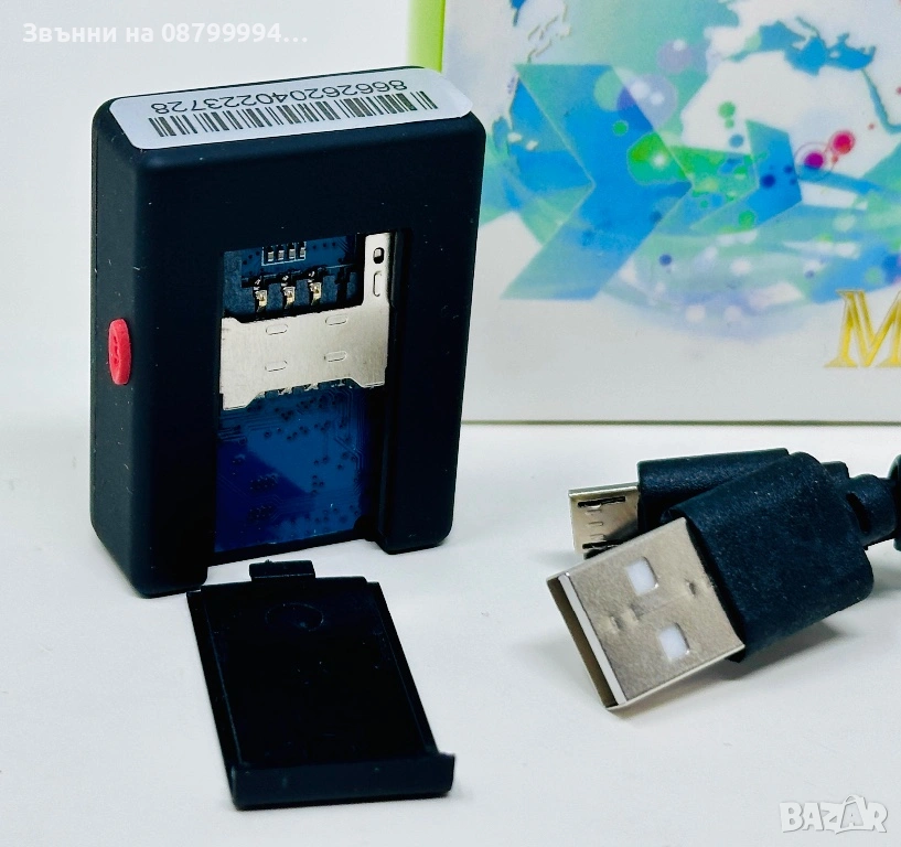 Подслушвателно Устройсво / GPS Тракер локатор Mini A8 Малък размер и тегло, лесен за носене. Черен корпус, лесен за скриване, идеален за проследяване на превозни средства, хора или вещи. Необходима е работеща SIM карта (НЕ е включена в комплекта), която да поставите в устройството, след което можете да проследявате и картографирате с Google Maps в реално време през интернет.