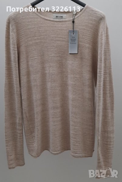 Мъжки пуловер Only & Sons, размери - М, L, XL и XXL. Размери M/L/XL/XXL: рамо-рамо 44/47/48/53 см., подмишници 53/56/60/63 см. , долна част 46/49/54/60см., дължина 68/71/72/73 см., ръкав 53/53/53/53 см.. Състав - 70 % памук и 30 % лен.