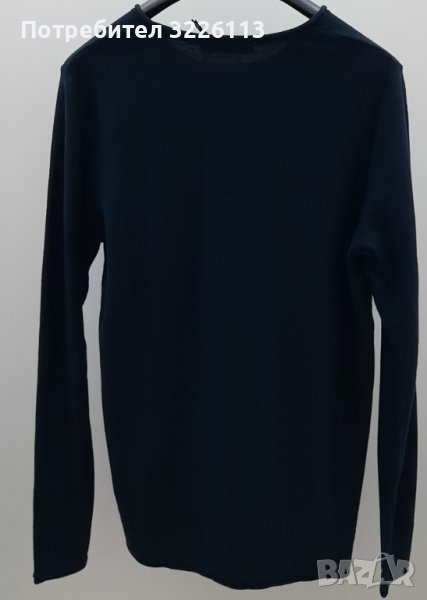 Мъжки пуловер Jack & Jones, размери - М и L. Цвят - тъмно синьо. Размери M/L: рамо-рамо 42/44 см., подмишници 51/53 см. , долна част 46/48 см., дължина 70/73 см., ръкав 50 см.. Състав - 100% памук . Преглед и тест.
