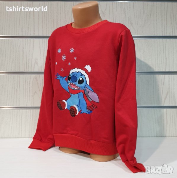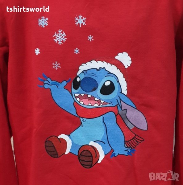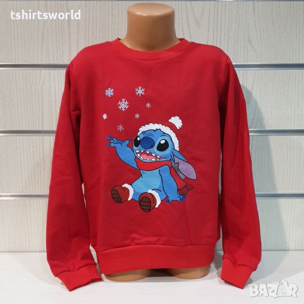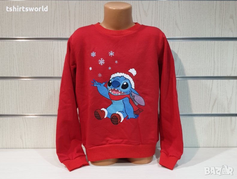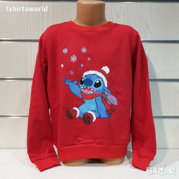 Нова коледна детска ватирана блуза с дълъг ръкав Стич (Stitch) в червен цвят