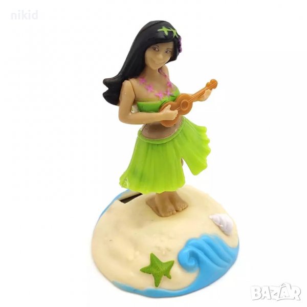 Момиче с китара Хавайка Хавайско Тропическо Соларна танцуваща играчка фигурка украса торта кола → Обява 38997861