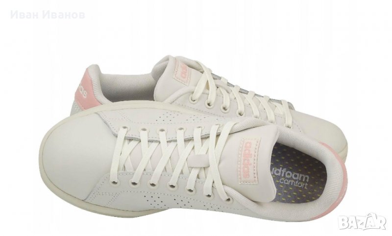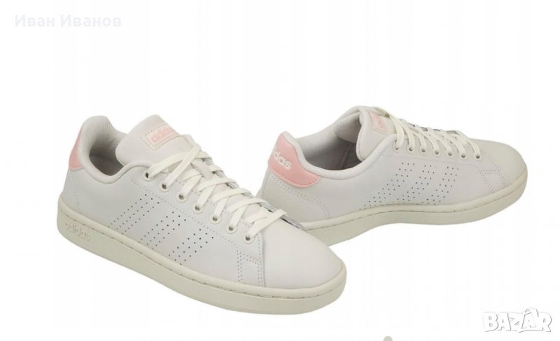 Тези бели маратонки, вдъхновени от атлетиката, се отличават с елегантен дизайн с горна част от гладка кожа и велурени детайли на петата. Перфорираните 3 ивици украсяват страните, а подплатената стелка осигурява по-голям комфорт върху вашия отпечатък. класическа кройка Система за връзки. Велурен ток. Гумена подметка