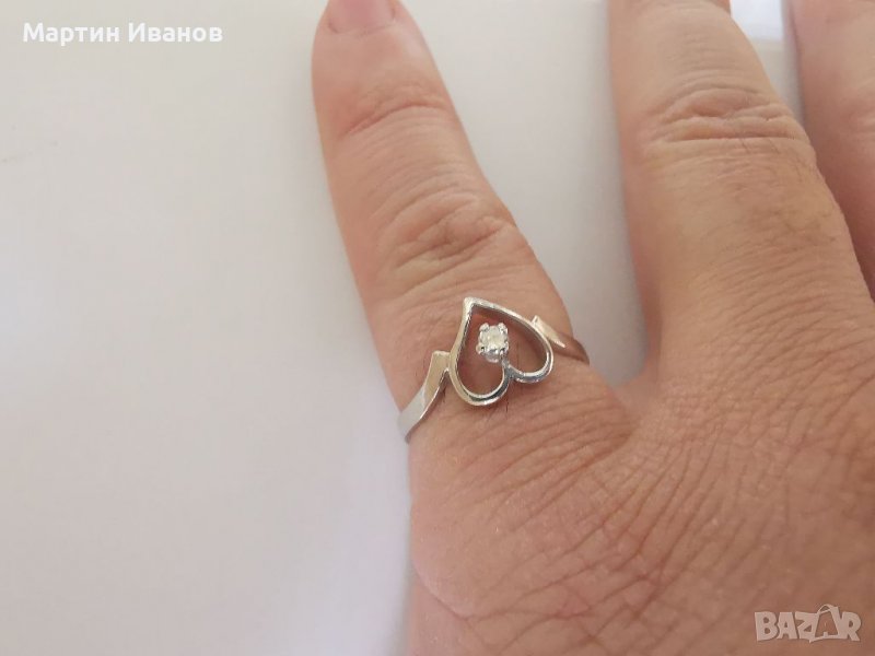 Златен пръстен сърце с диамант → Обява 39005995