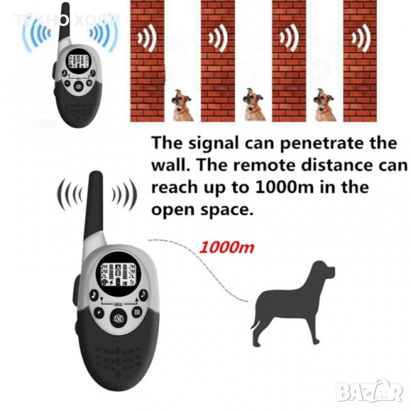 - обхвата между дистанционното и нашийника е до 350 метра , като на открита