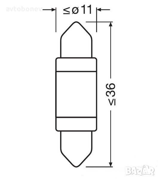 - Размери на крушката: D: 11.0 mm L: 36 mm